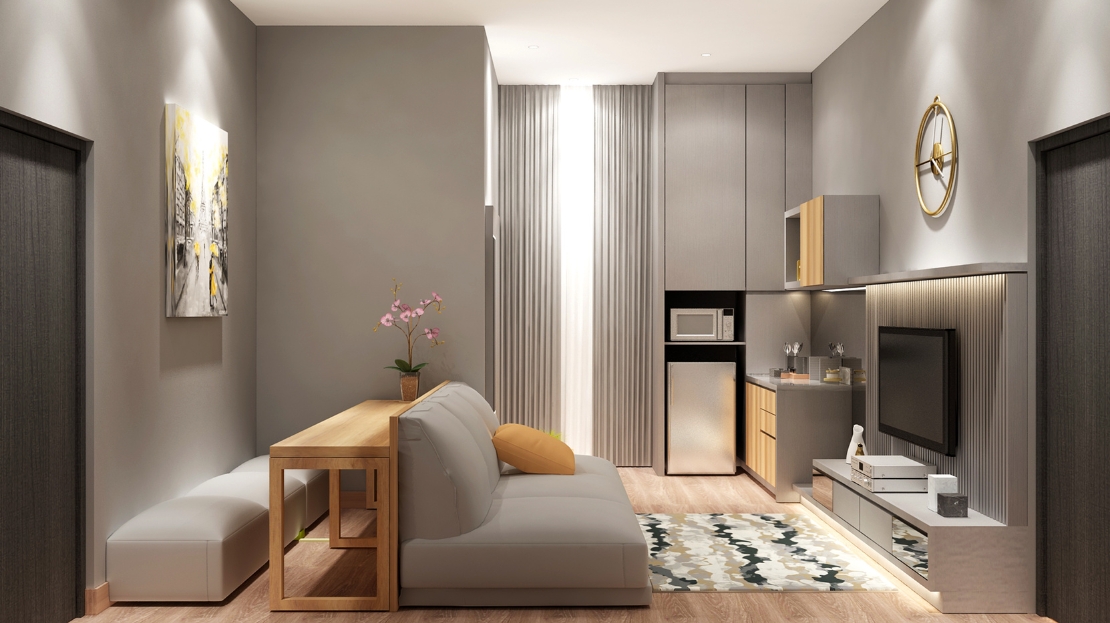 The first step is to measure the Built-Up Area of the apartment, which includes the entire area covered by the walls, including the thickness of the walls.